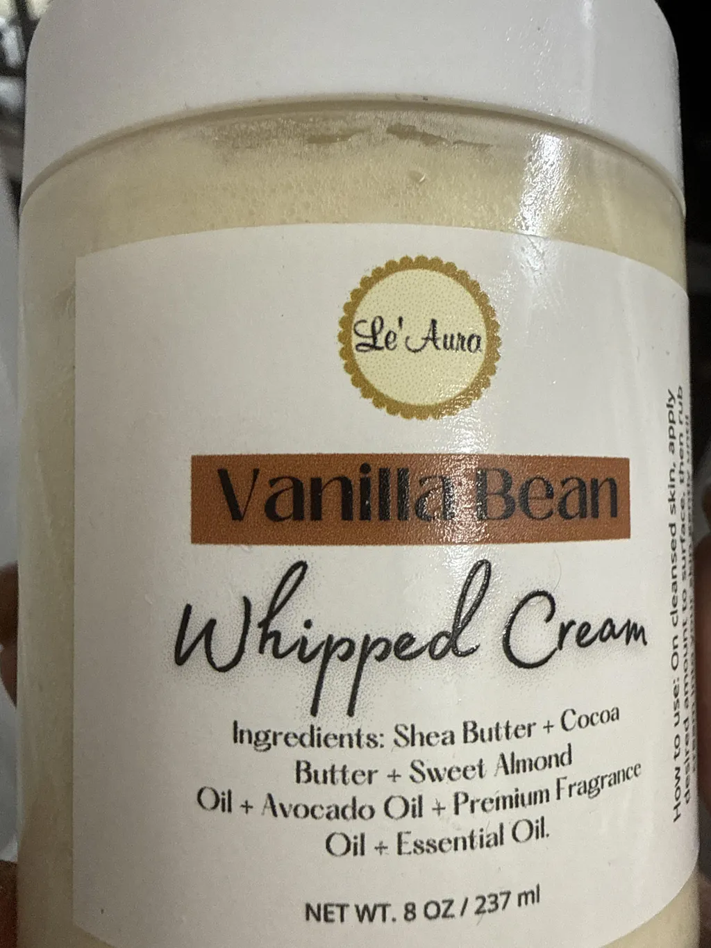 This whipped cream body butter melted on my skin the moment it touched, I’m so happy that I selected this item. The smell is amazing,I purchased Vanilla Bean, it leaves you feeling so soft. I’m definitely ordering more😍